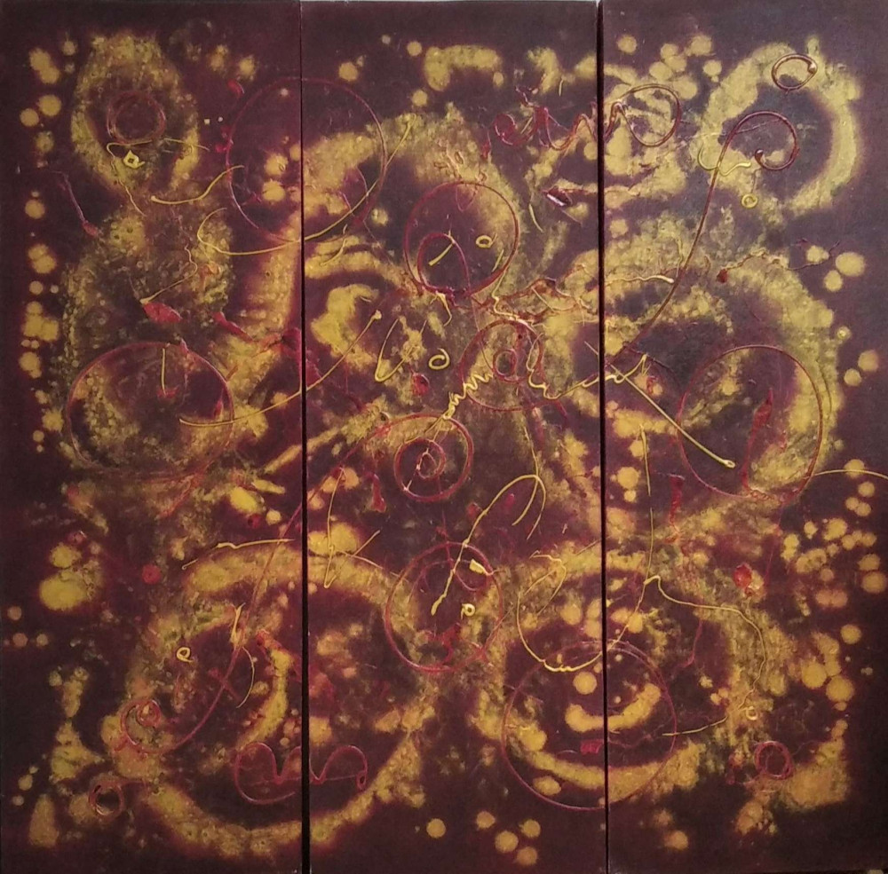 3 részes piros-arany absztrakt festmény