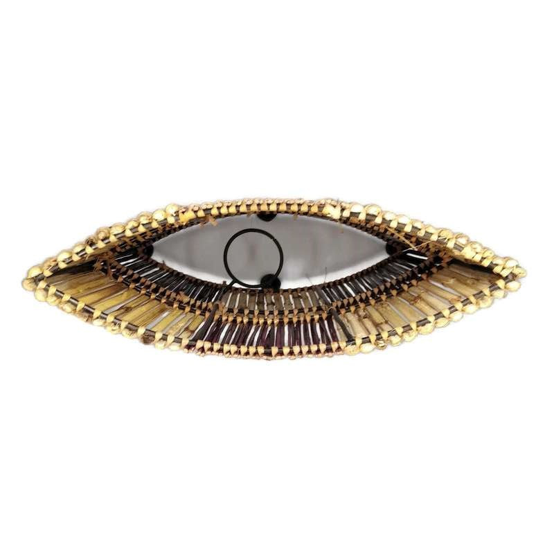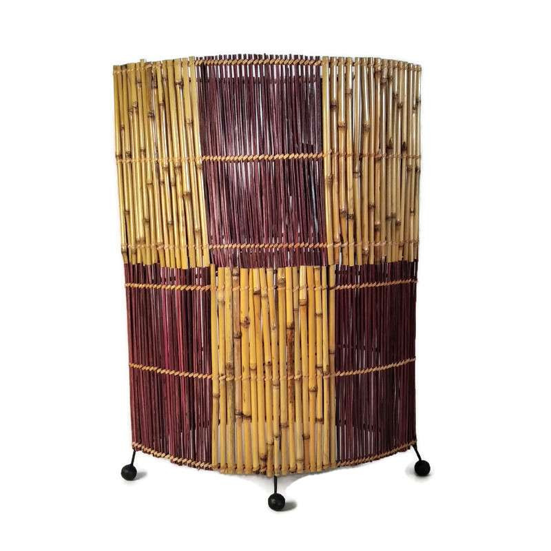 Fém keretre rögzített bambuszból és vesszőszálakból kézzel van készítve.