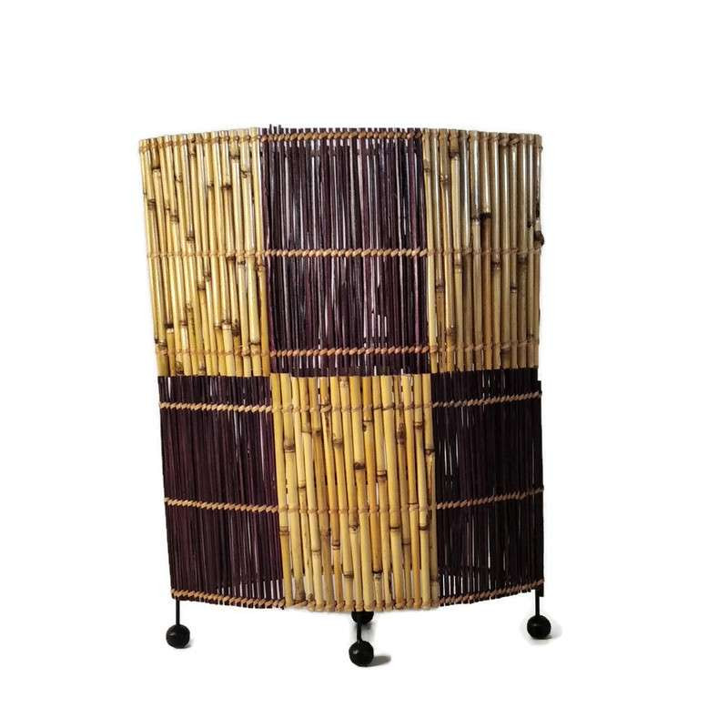 Fém keretre rögzített bambuszból és vesszőszálakból kézzel van készítve.