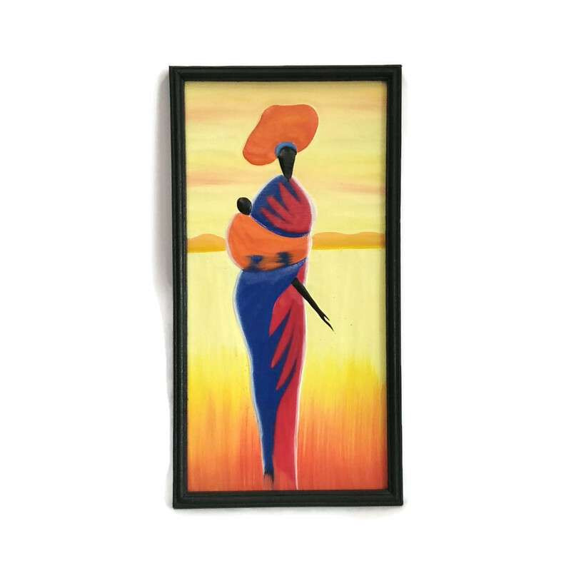 Fa kép, afrikai hölgy, gyermekkel a hátán