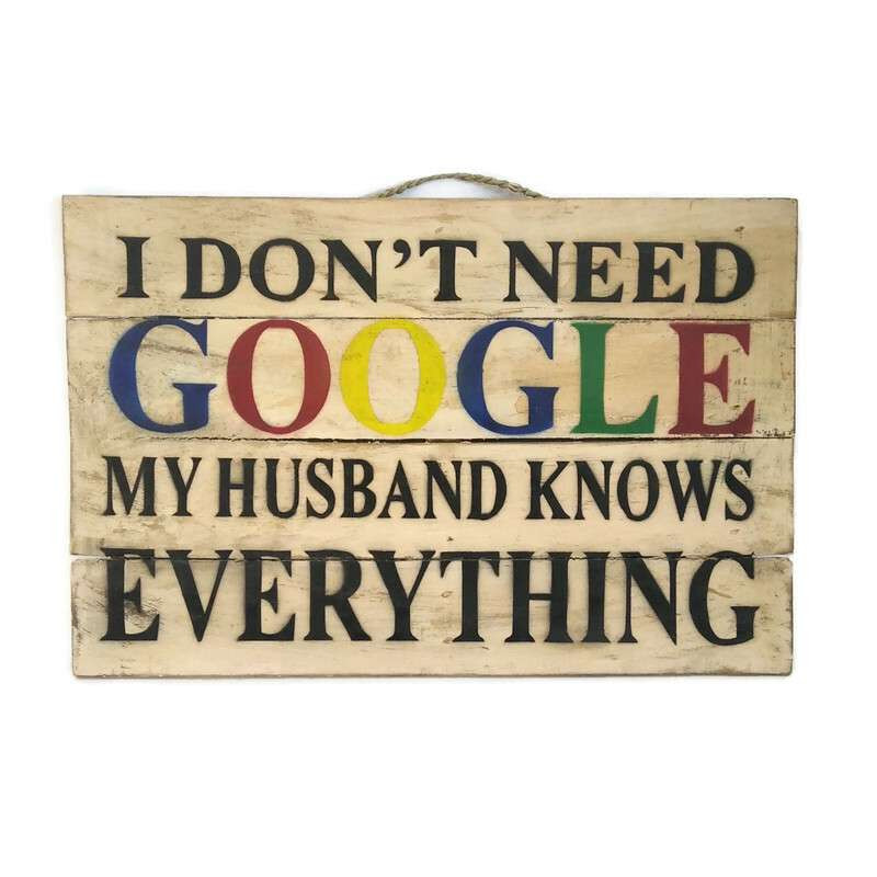 Fatábla festett, vicces idézet dizájn I don't need Google