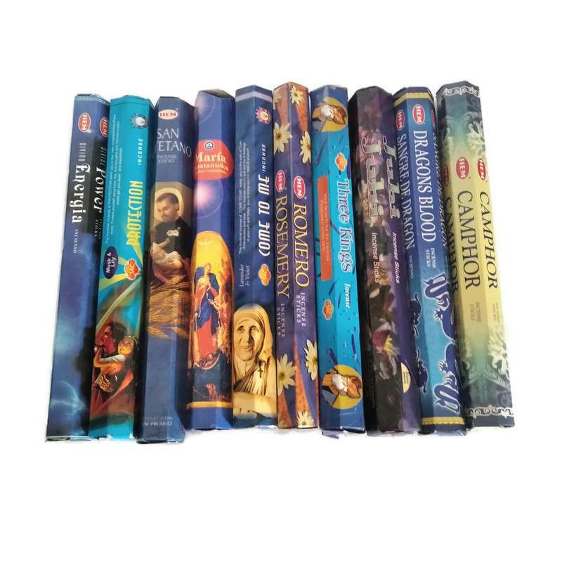 Szén alapú füstölők, amiket mártásos-technikával illatosítottak meg. 10 féle illatot találsz a csomagba, mindegyikből 20szál van a dobozokban.