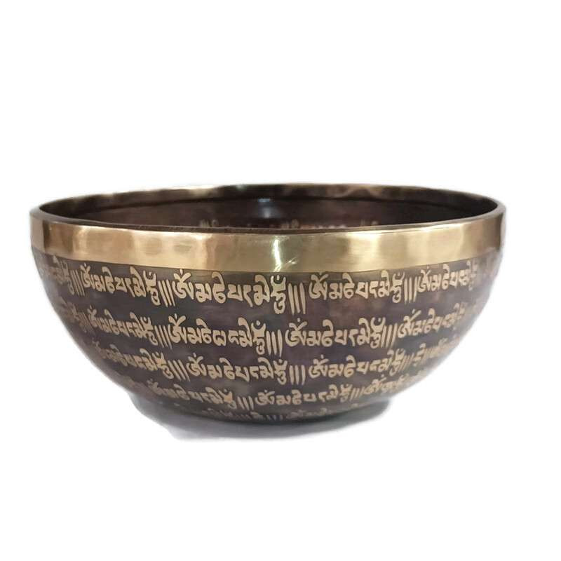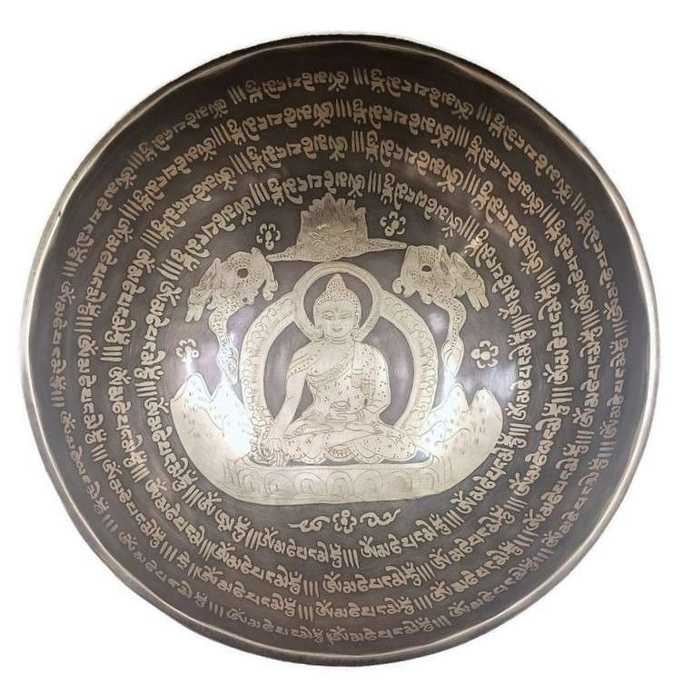 Hangtál Tibeti kézzel vésett gyógyító Buddha mintával 1832gr. 11 féle fémből, kézzel készített hangtál, mely segít a meditálásban és a csakrák blokkjainak oldásában, testi-lelki elakadásokban.