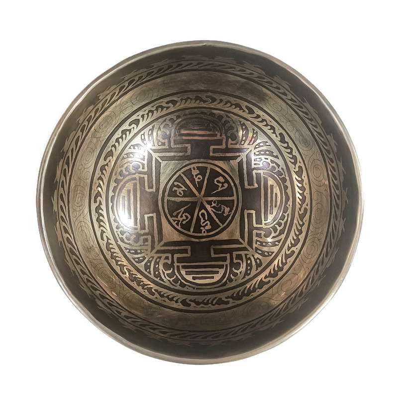 Hangtál Tibeti kézzel vésett mintával 626gr Imakerék. 11 féle fémből, kézzel készített hangtál, mely segít a meditálásban és a csakrák blokkjainak oldásában, testi-lelki elakadásokban.
