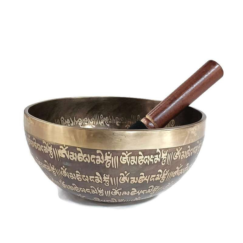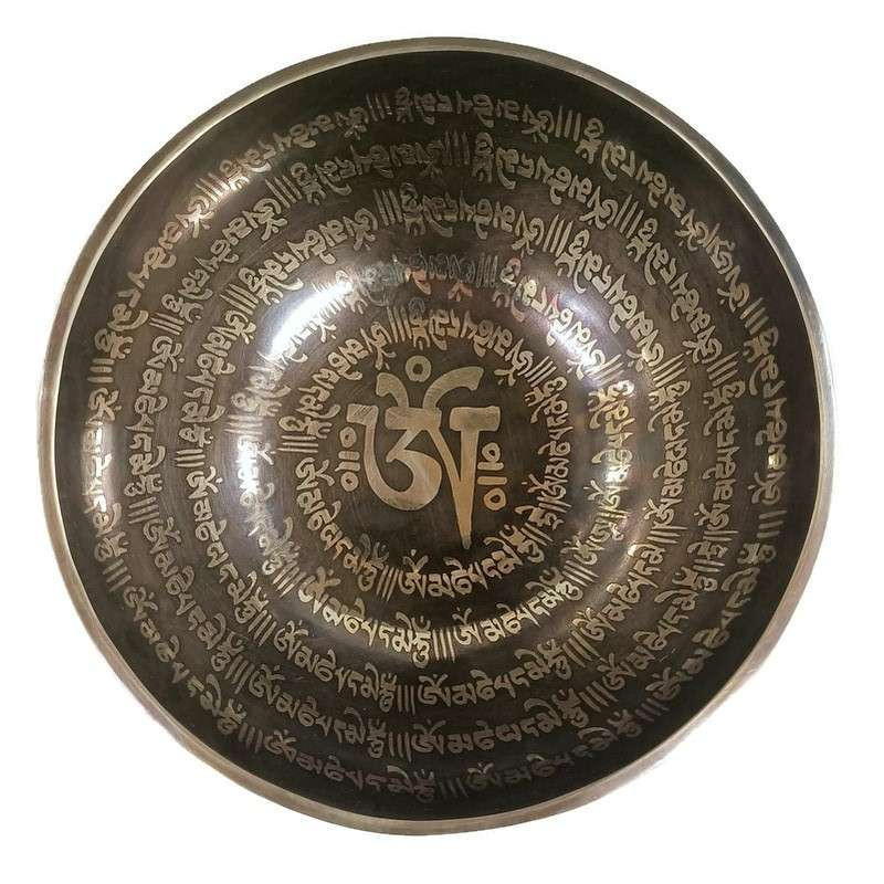 Hangtál Tibeti kézzel vésett mintával 892gr Om jellel. 11 féle fémből, kézzel készített hangtál, mely segít a meditálásban és a csakrák blokkjainak oldásában, testi-lelki elakadásokban.