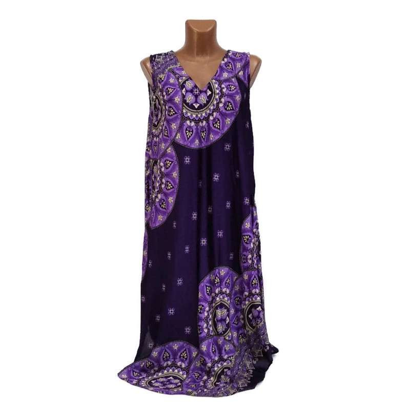 Harang fazonú, mandala mintás ujjatlan ruha, ametisztlila levendulaszínű mintával