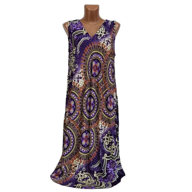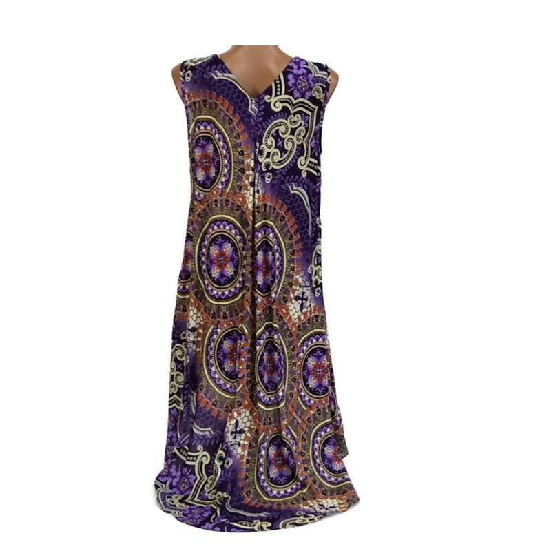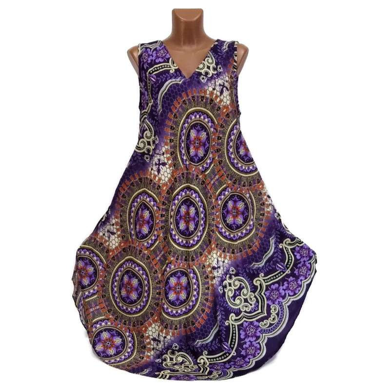 Harang fazonú, színes mandala mintás ujjatlan ruha, lila