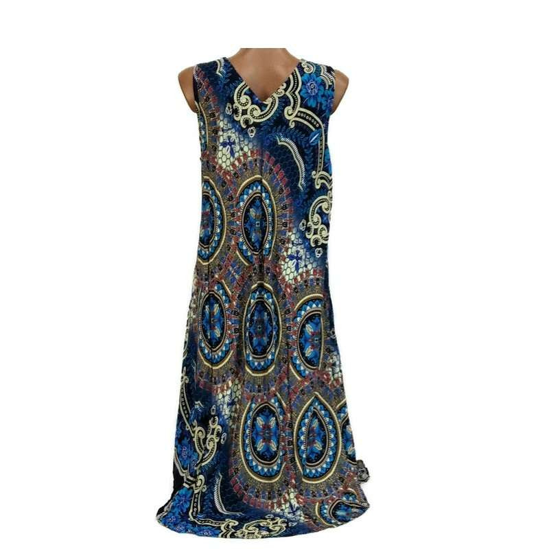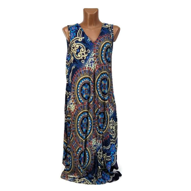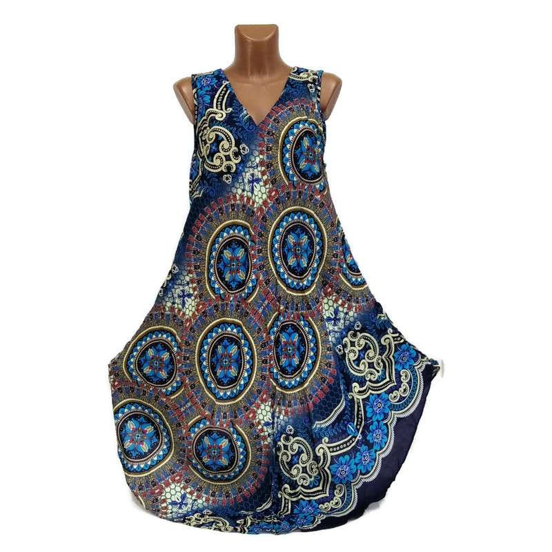 Harang fazonú, színes mandala mintás ujjatlan ruha, sötétkék