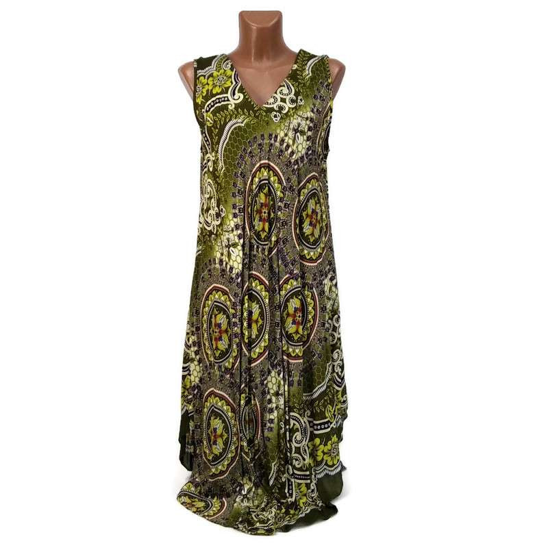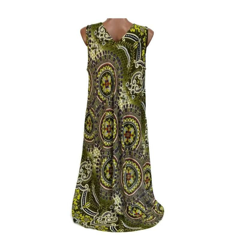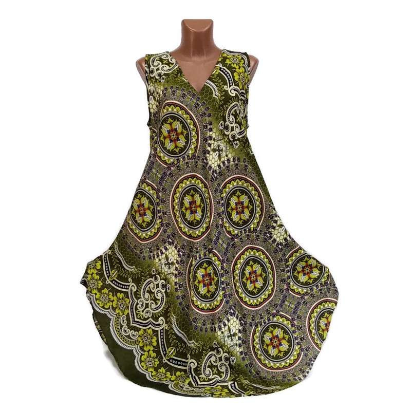 Harang fazonú, színes mandala mintás ujjatlan ruha, zöld