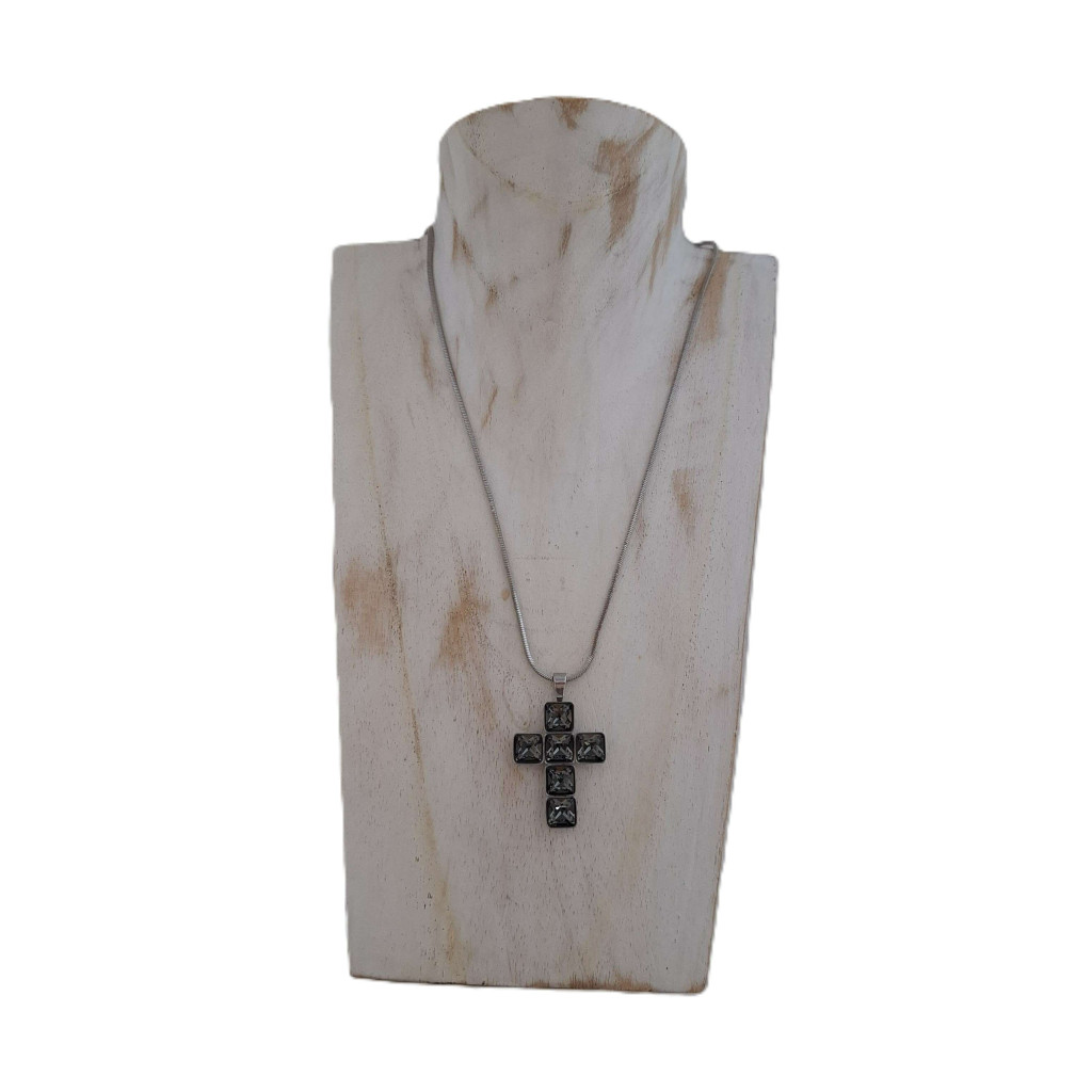 Ez a kereszt medál nem csupán ékszer, hanem ősi szimbólum, amely mély kulturális és spirituális jelentéssel bír. A szögletes, csiszolt kristályüveg kövek hamuszürke árnyalatban ragyognak, ami a nyugalmat, az egyensúlyt és a belső bölcsességet jelképezi. Elegáns, letisztult megjelenése miatt mindennapi viseletre és különleges alkalmakra egyaránt tökéletes.