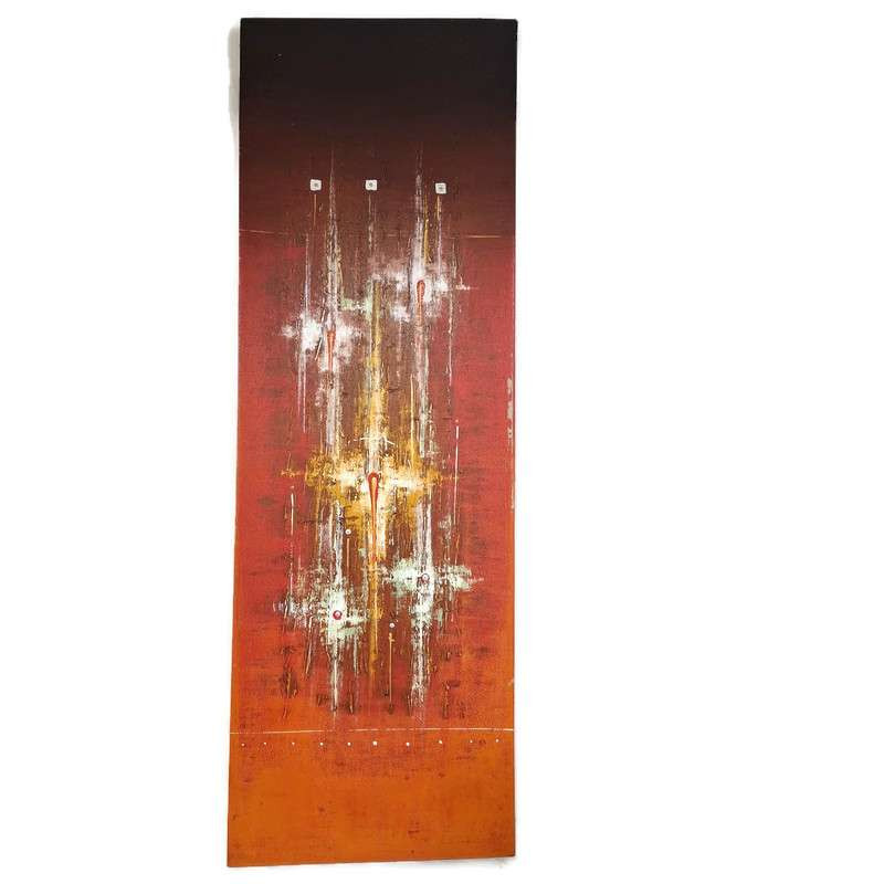 A festmény lendületes ecsetvonásai és árnyalatai a mozgás és energia érzetét keltik, így ez az absztrakt stílusú akril festmény nem csupán dekoráció, hanem egyedi hangulati elem is. A kézzel készült vászonkép minden darabja megismételhetetlen, így otthonodba vagy irodádba valódi művészi értéket visz.