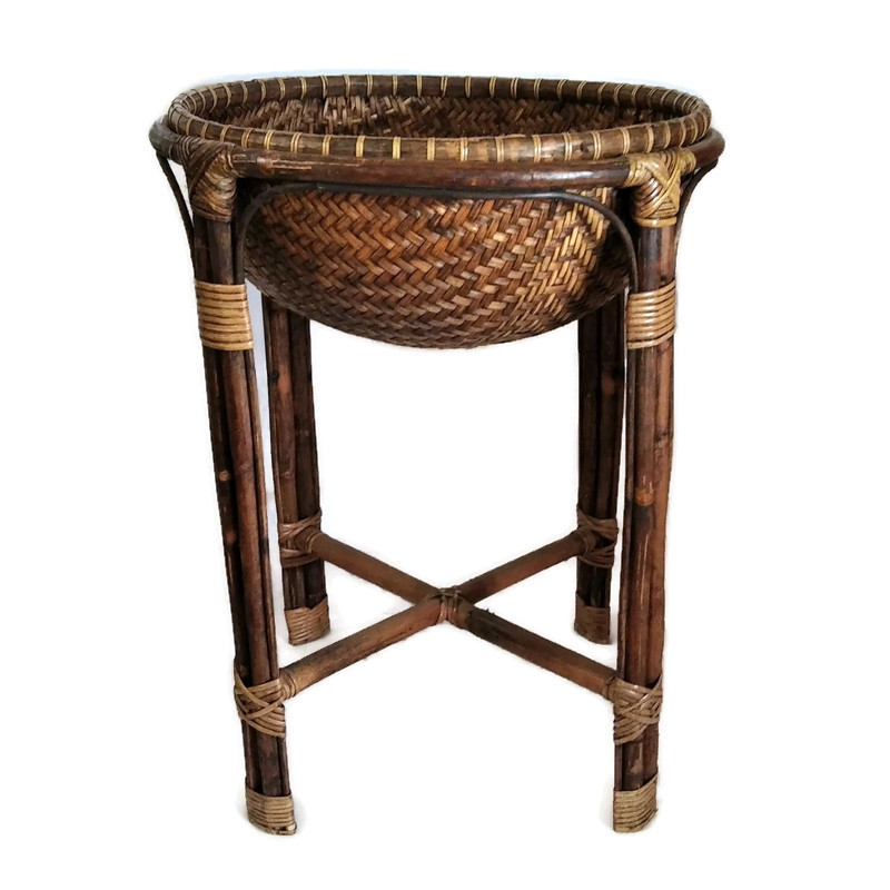 Lábon álló fonott tároló. Természetes anyagokból kézzel készült, a bambusz váznak köszönhetően strapabíró. Szép kiegészítője lehet a fürdőszobának, vagy hasznos tárolóként is megjelenhet a kamrában.