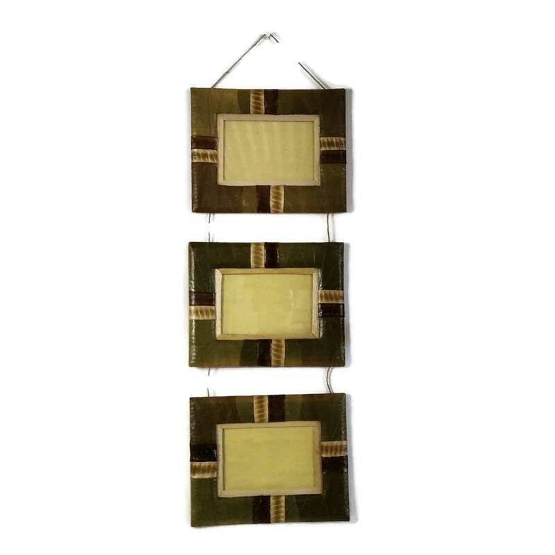 Natúr képkeret 3 részes falra akasztható, csíkos "XL"