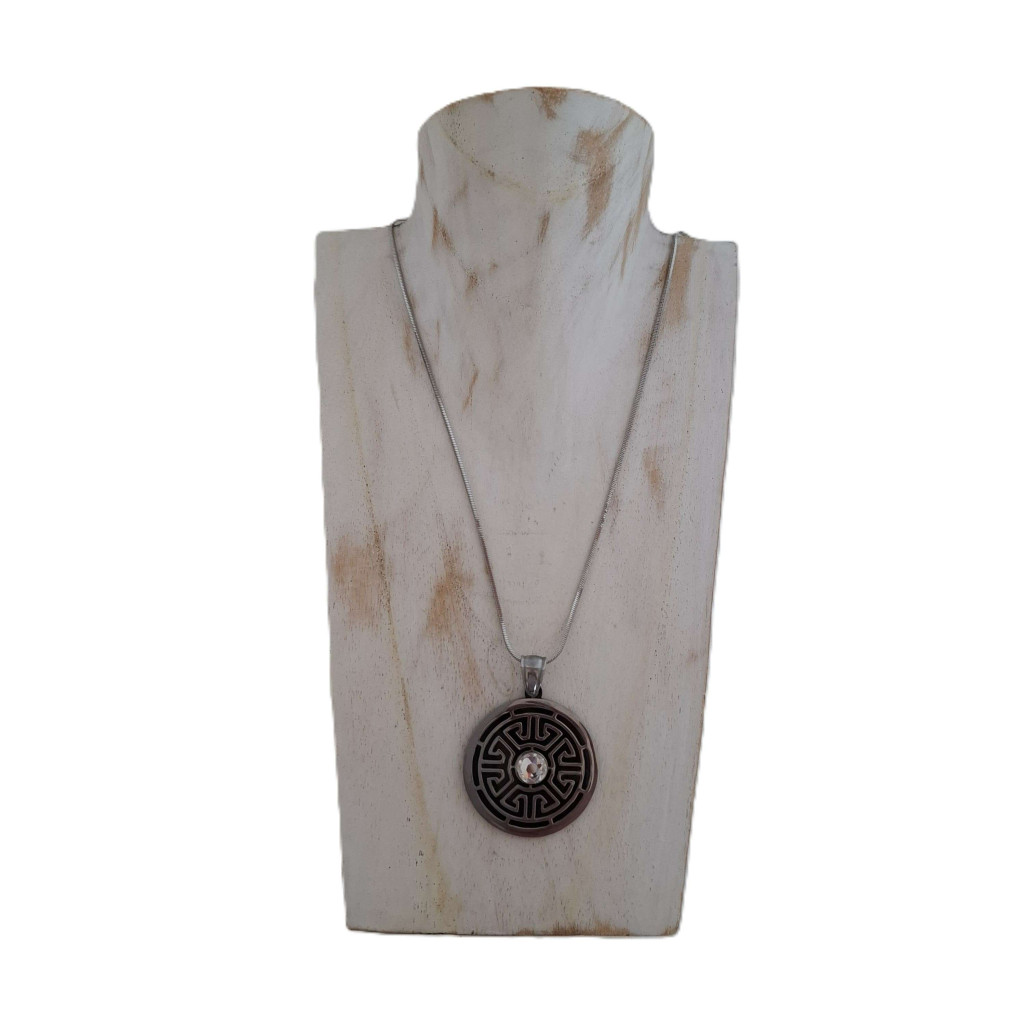 Ez a nemesacél labirintus medál fekete háttérrel és kristályüveg kővel így nemcsak stílusos kiegészítő, hanem a belső utazás, a védelem és a spirituális fejlődés szimbóluma is.