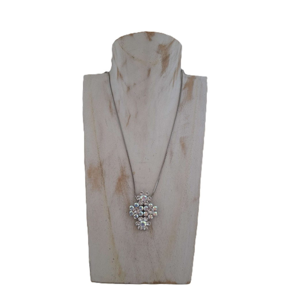 Ez a különleges női medál aprólékosan megmunkált, 4 virágformává alakított csiszolt kristályüvegekből áll. A kristályok finom, színes ragyogása játékosan változik a fényben, így minden mozdulatnál új dimenziót ad a megjelenésnek. A medál különlegessége, hogy elegáns nemesacél foglalatban található, amely kiemeli a kristályok szépségét és biztosítja a hosszú élettartamot.