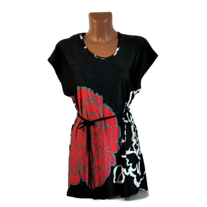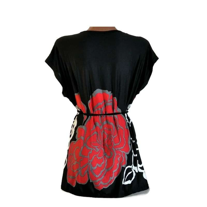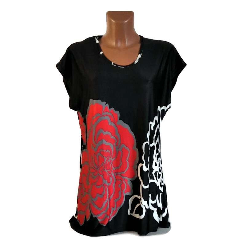 Női felső fekete, piros virággal