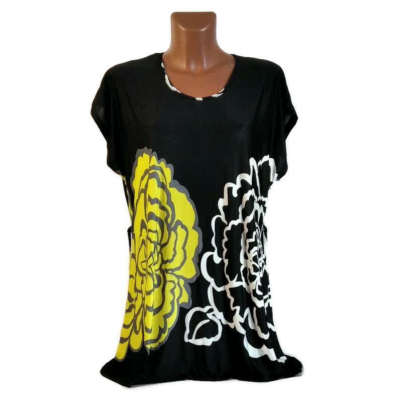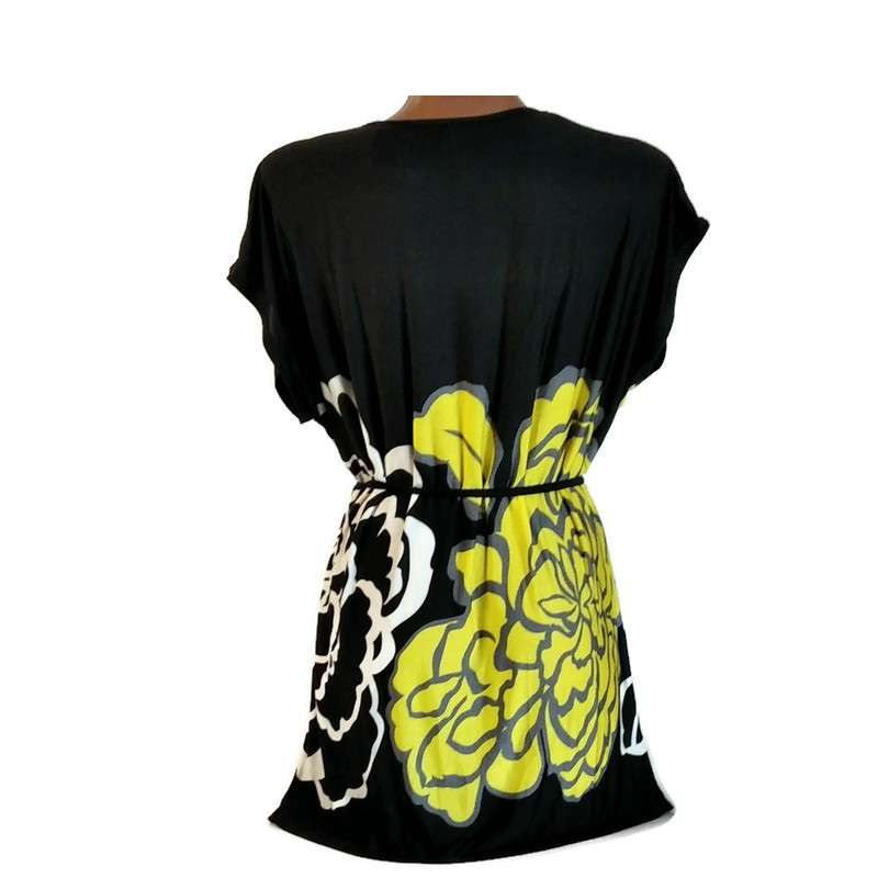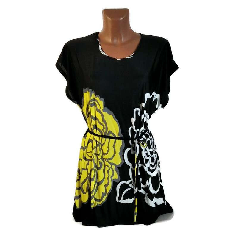 Női felső fekete, sárga virággal