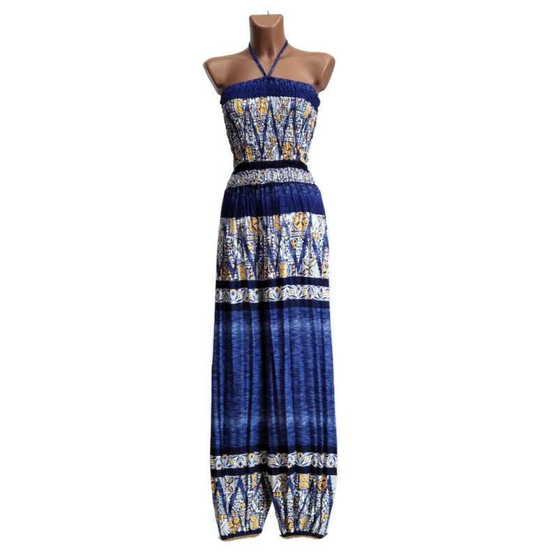 Női overál - kék mintás, mintás felső rész