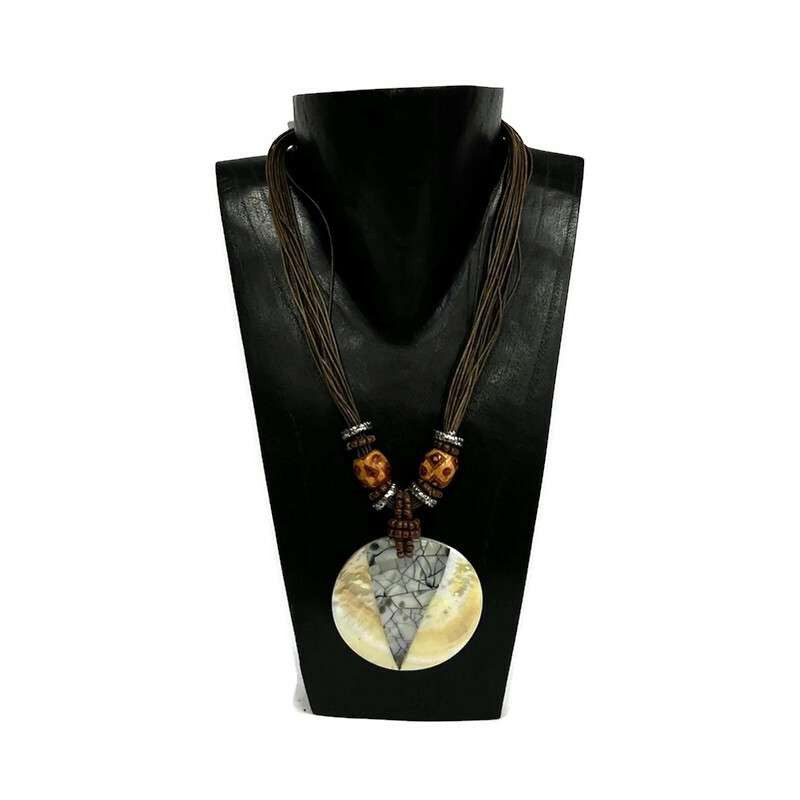 Anyaga: kagyló, fa, akril, viaszolt cotton zsinór, fém