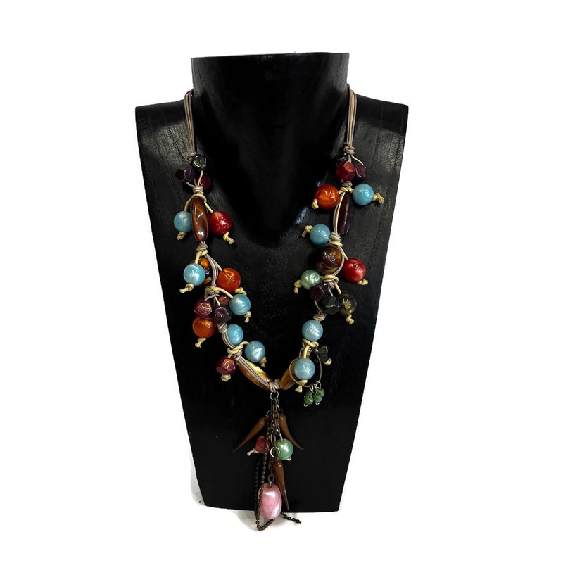 Anyaga: akril, fém, viaszolt cotton zsinór
