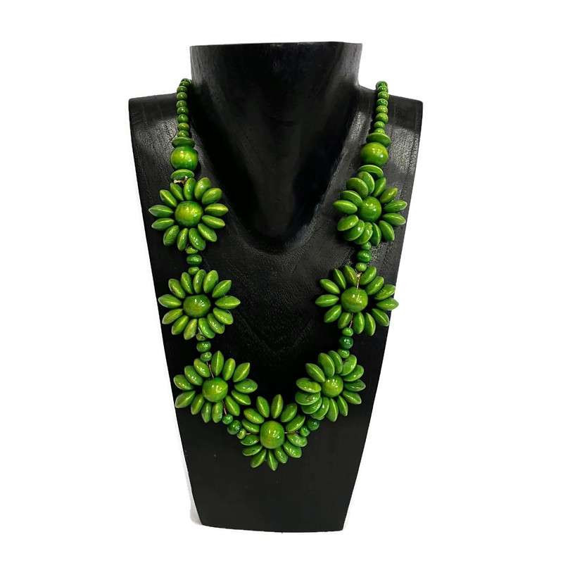 Nyaklánc, női, fa gyöngyös virág 1.