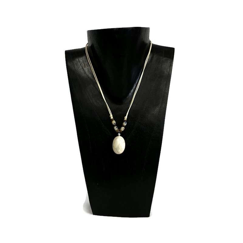 Anyaga: kő, kókuszhéj, viaszolt cotton zsinór, fém, üveg