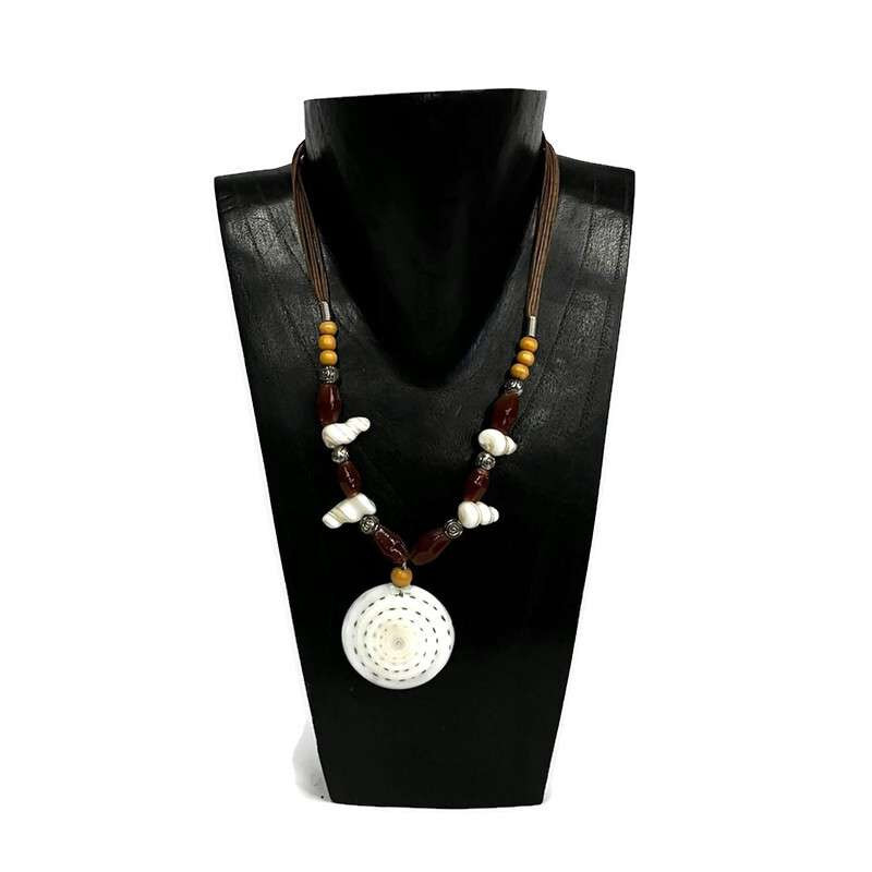 Nyaklánc, női, kagyló medállal, kagyló formájú üveg gyönggyel