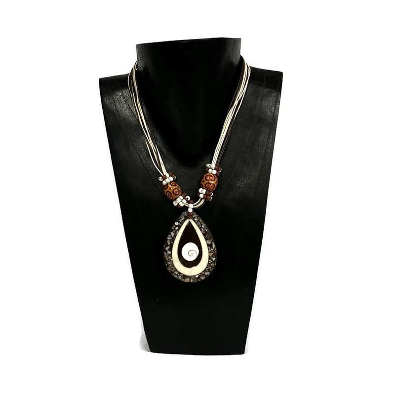 Anyaga: kagyló, viaszolt cotton zsinór, műgyanta, akril, fa