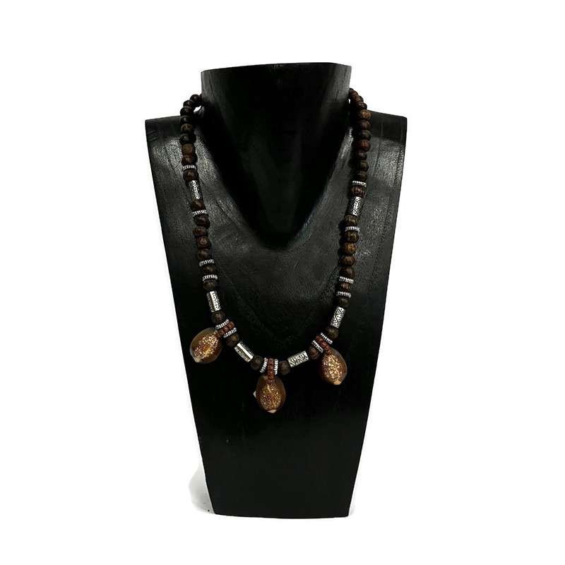 Nyaklánc, női, kókuszfa gyöngyös 3 kagylóval