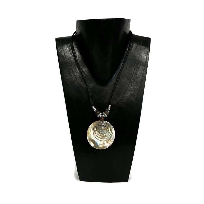 Anyaga: fém, viaszolt cotton zsinór, fa, kagyló