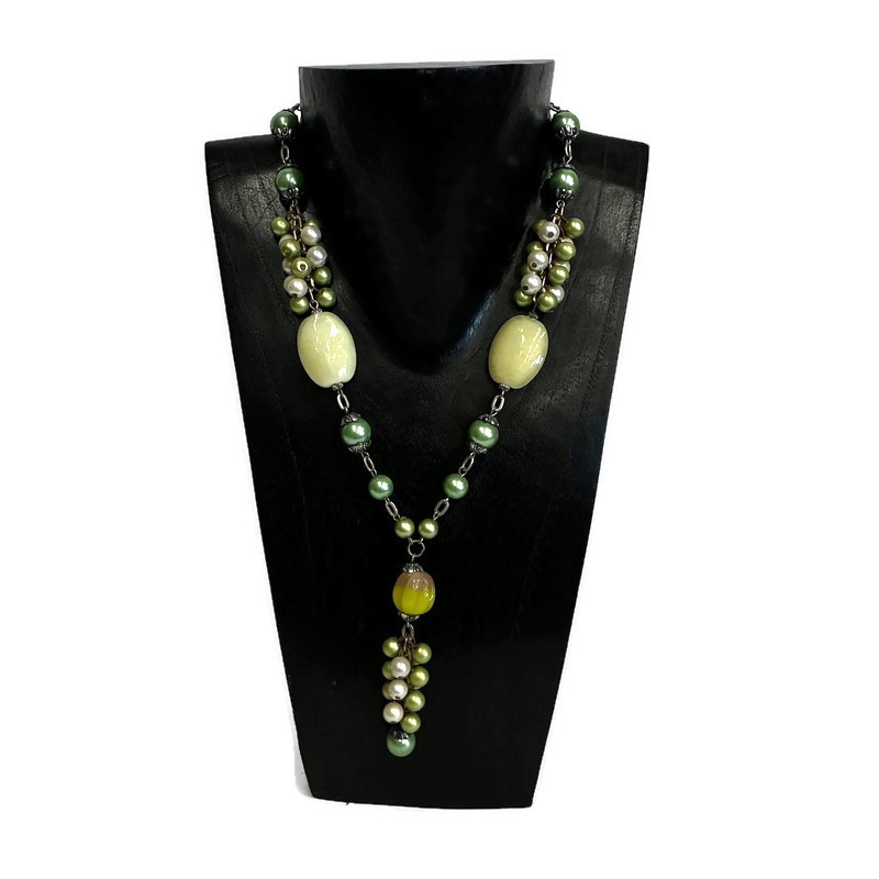 Nyaklánc, női, tekla gyöngy, nagy lapos üveggyönggyel 2.