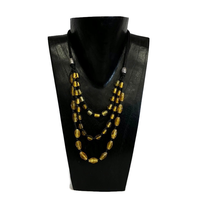 Nyaklánc, női, 3 soros üveg gyöngyös