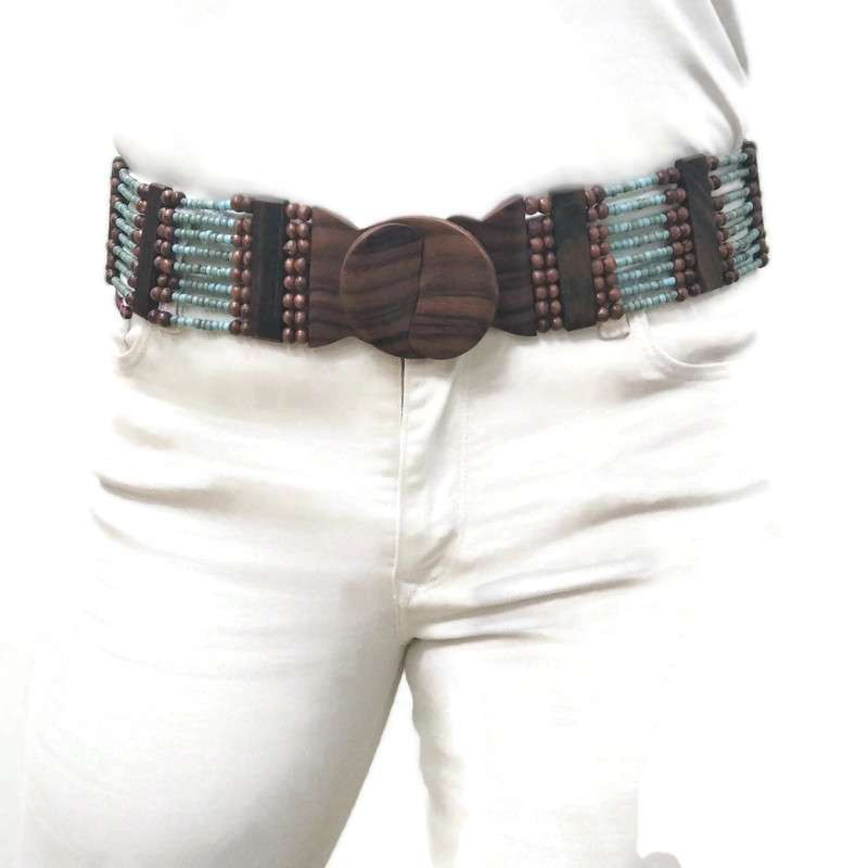 Öv gyöngyökkel – Egyedi, természetes stílusban. Ez a divatos és stílusos kiegészítő tartós gumira fűzött gyöngyökkel készül, csatját pedig különleges kókuszfa díszíti. Rugalmas kialakítása kényelmes viseletet biztosít, miközben karaktert ad bármilyen öltözéknek. Tökéletes választás, ha valami igazán különlegeset keresel a megjelenésedhez.
