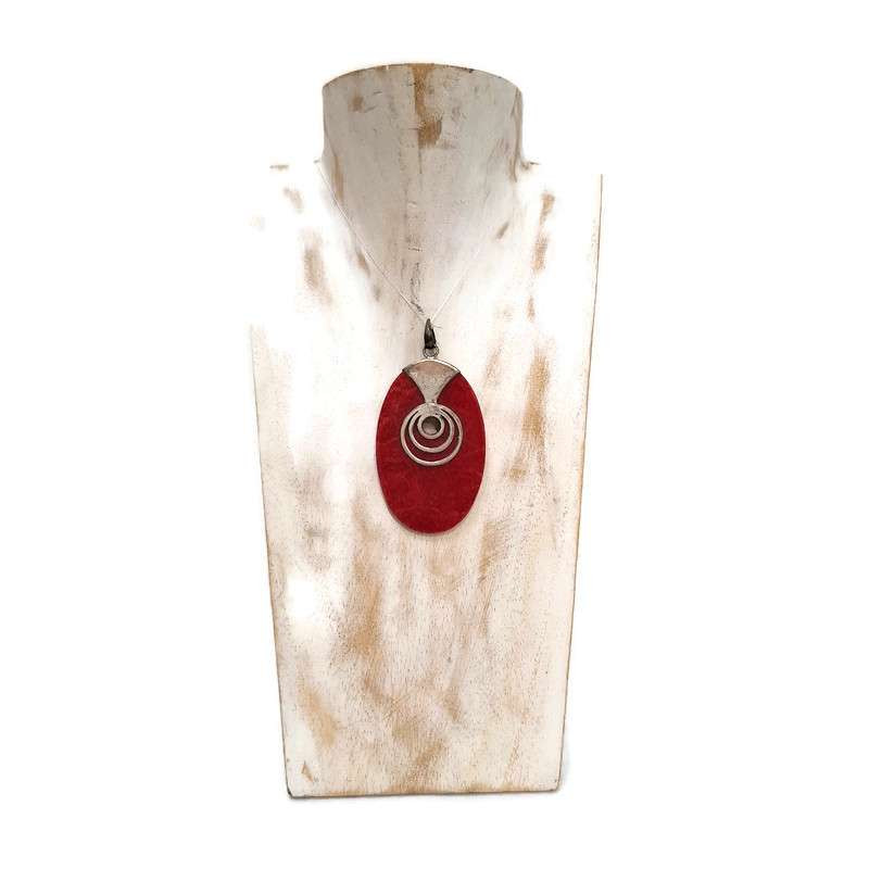 Ez az elegáns, ovális alakú piros korall medál a természet erejét és a kézműves mesterség finom részleteit ötvözi. A mélyvörös korall felületén egy különleges, áttört ezüstből készült kör díszítés található, amely játékosan kiemeli a medál egy részét, így légies, mégis karakteres megjelenést kölcsönöz az ékszernek.