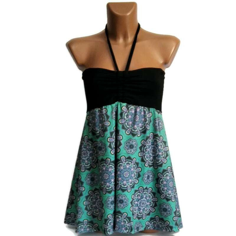 Tökéletes alapdarabja lehet a nyári ruhatáradnak, mert nem csak egy mutatós szoknyára tehetsz szert, hanem egy dekoratív nyakba kötős felsőre is egyszerre. Bátran hordható mindkét verzióban egyaránt.