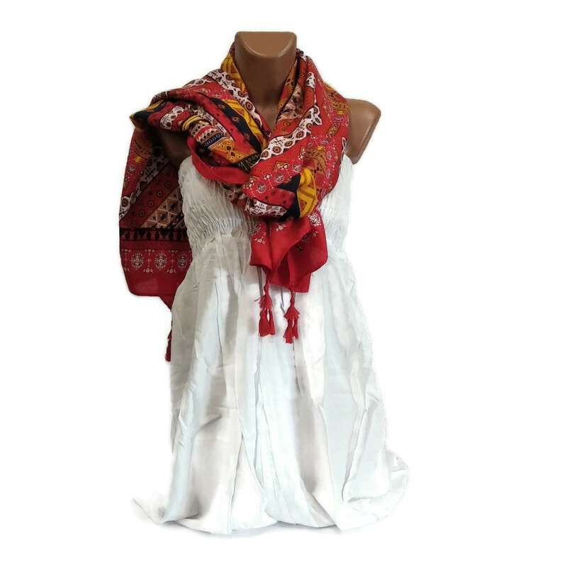 Thai kendő, piros-fehér 2 négyzettel