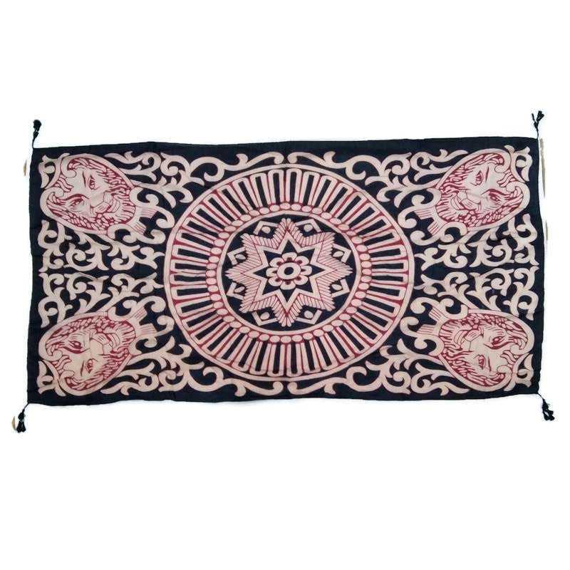 Thai kendő, sötétkék-piros-fehér, oroszlánokkal a sarkaiban