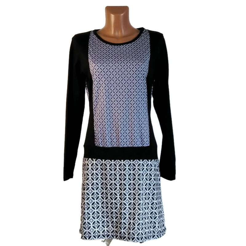UDG hosszú fekete ujjú, kék apró mintás ruha "S"