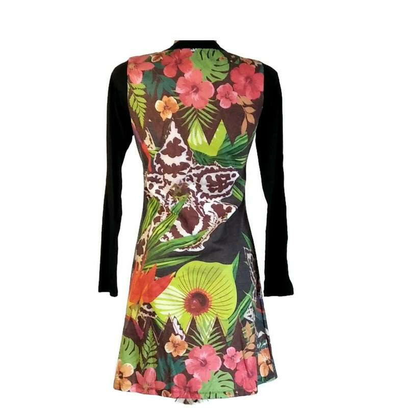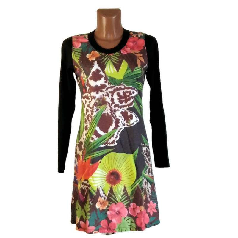 UDG hosszú fekete ujjú, színes virágmintás ruha "S"