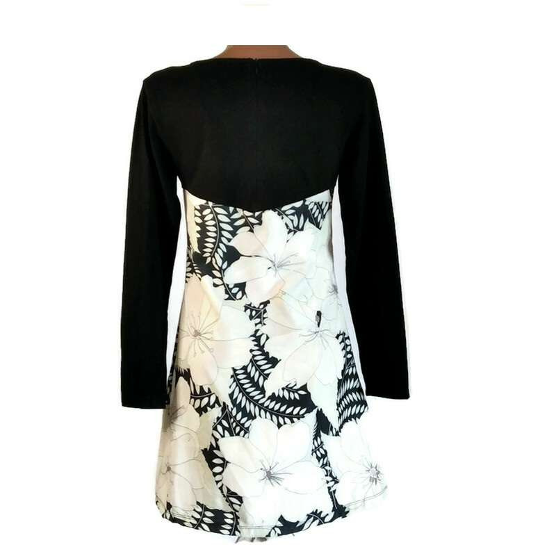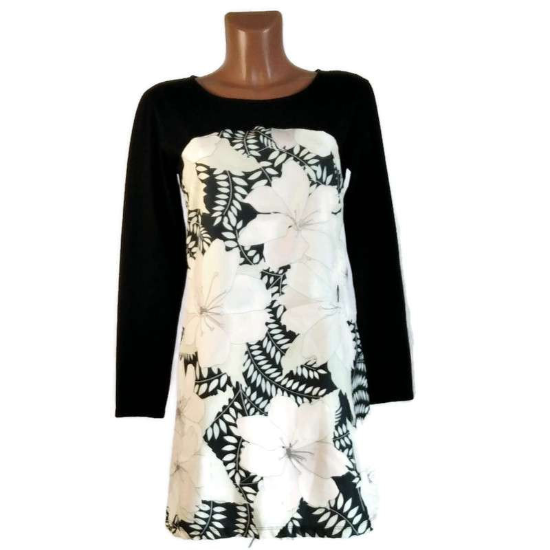 UDG hosszú fekete ujjú, nagy virágos ruha