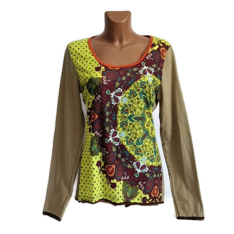 UDG hosszú ujjú felső homokszínű ujjú, barna-zöld fél mandala "L"
