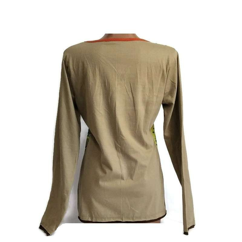 UDG hosszú ujjú felső homokszínű ujjú, barna-zöld fél mandala "M"