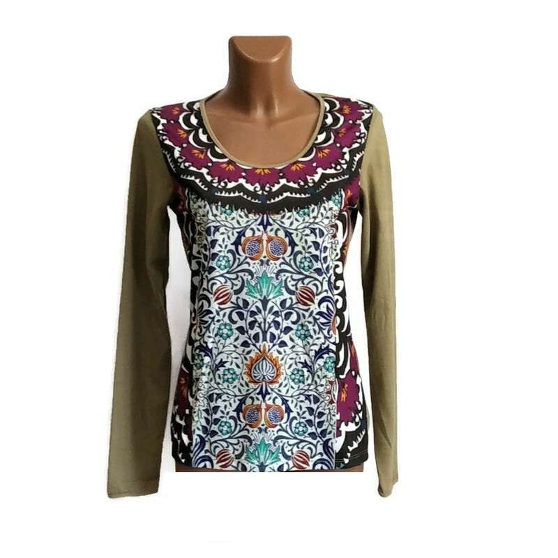 UDG hosszú ujjú felső homokszínű ujjú, inda motívumos