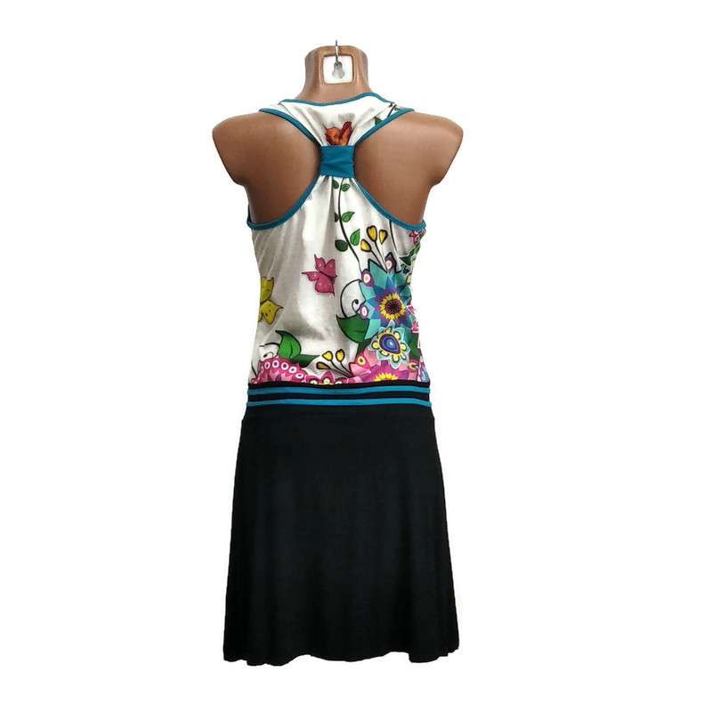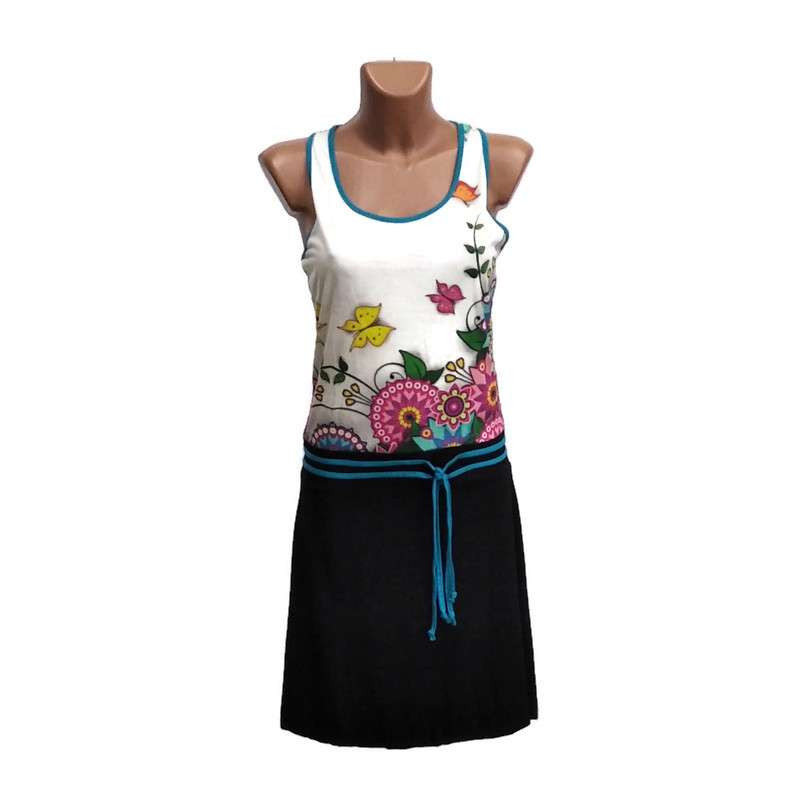 UDG rövid ruha, virágos-pillangós, fekete aljú "L"