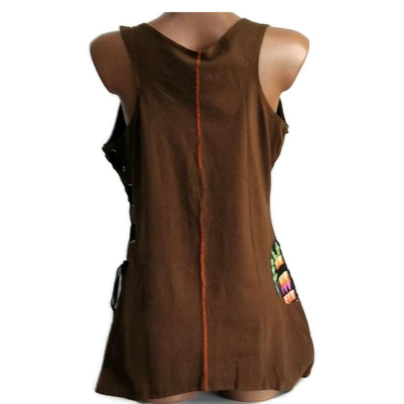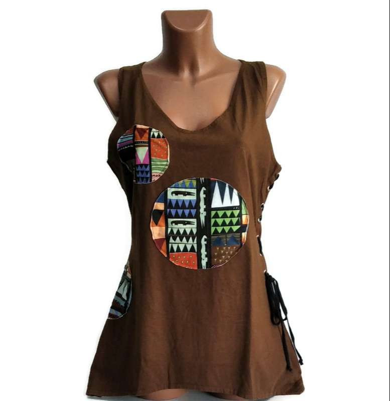 UDG ujjatlan felső, barna, kör alakú díszítéssel