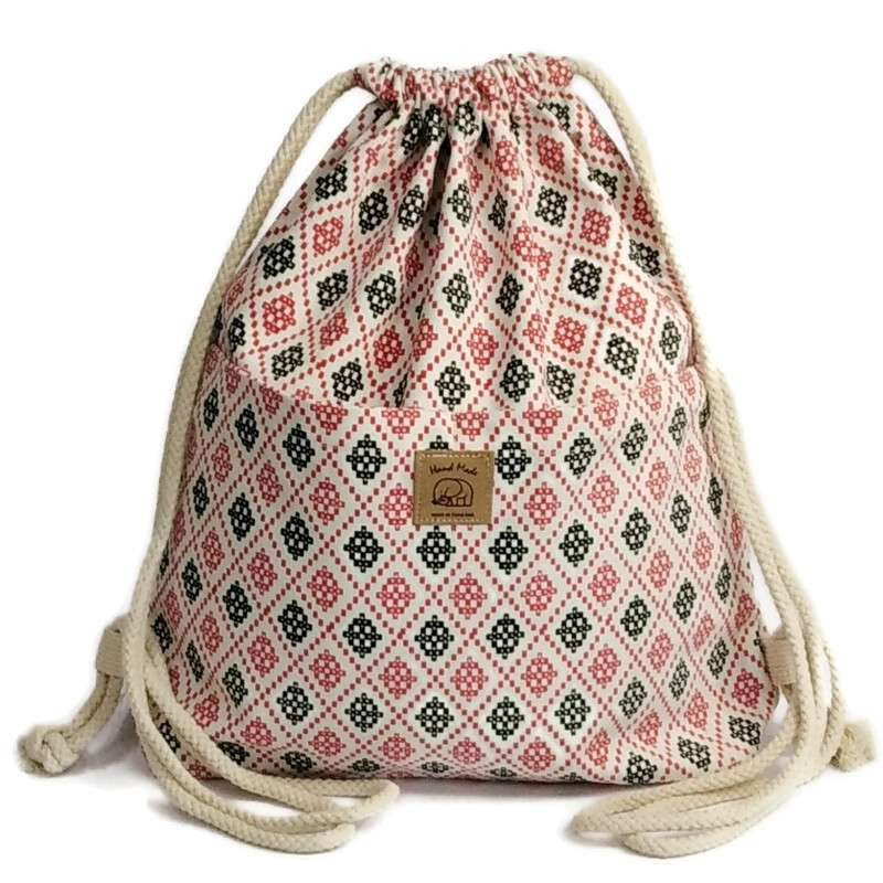 Utcai tornazsák, fehér alapon piros-fekete mintás