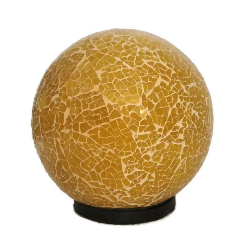 Egyedi lámpabúra fa talpon. A kézzel festett üvegdarabok műanyag búrára egyesével vannak rögzítve, ezáltal minden darab különleges. Kivilágítás nélkül is ékkövei lehetnek lakásunknak.