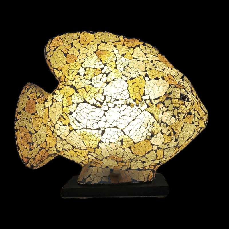 Egyedi lámpabúra fa talpon. A kézzel festett üvegdarabok műanyag búrára egyesével vannak rögzítve, ezáltal minden darab különleges. Kivilágítás nélkül is ékkövei lehetnek lakásunknak.