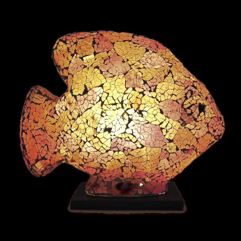 Egyedi lámpabúra fa talpon. A kézzel festett üvegdarabok műanyag búrára egyesével vannak rögzítve, ezáltal minden darab különleges. Kivilágítás nélkül is ékkövei lehetnek lakásunknak.