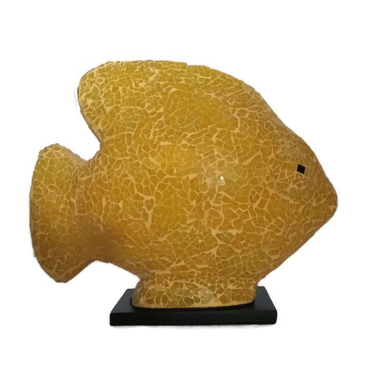 Egyedi lámpabúra fa talpon. A kézzel festett üvegdarabok műanyag búrára egyesével vannak rögzítve, ezáltal minden darab különleges. Kivilágítás nélkül is ékkövei lehetnek lakásunknak.